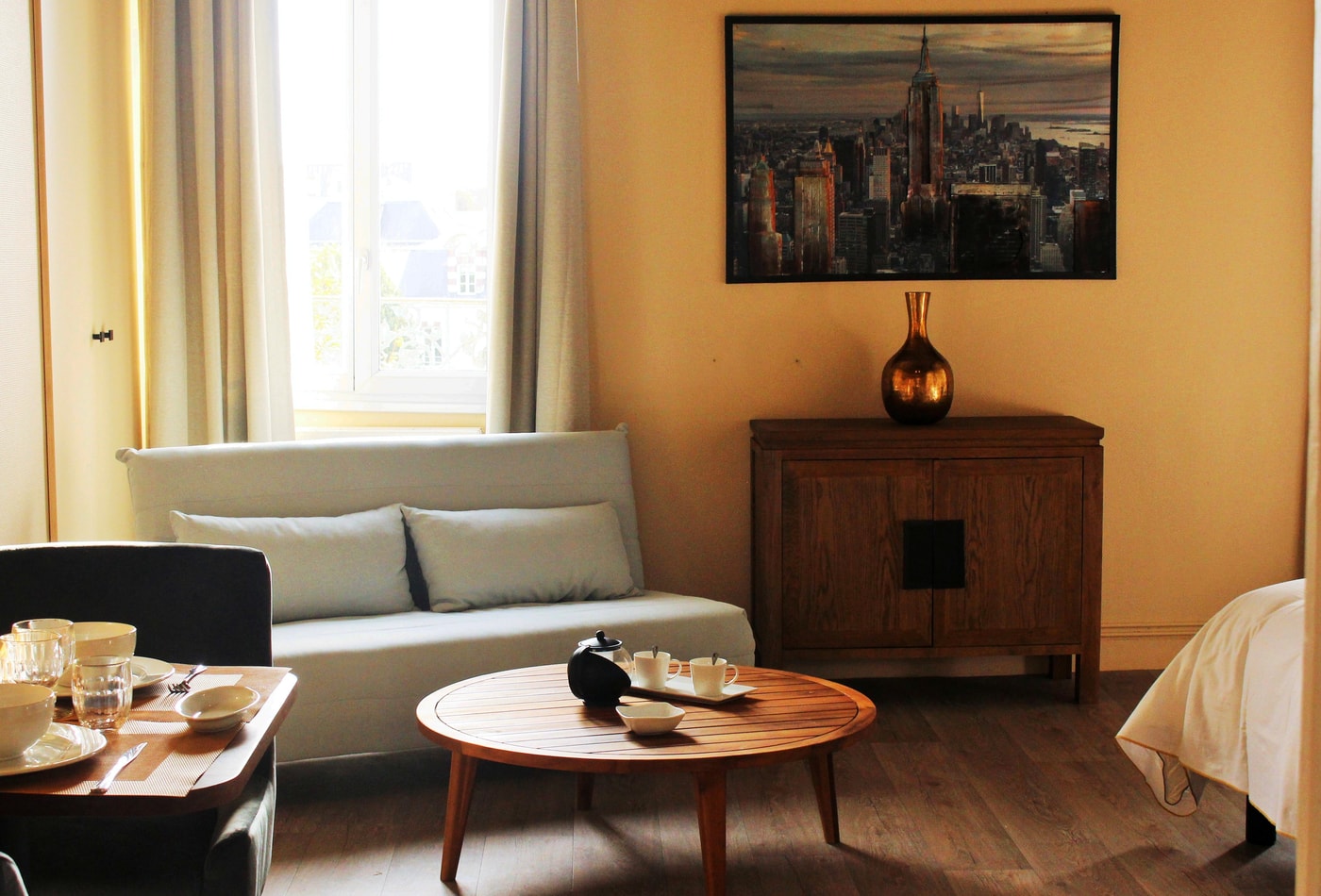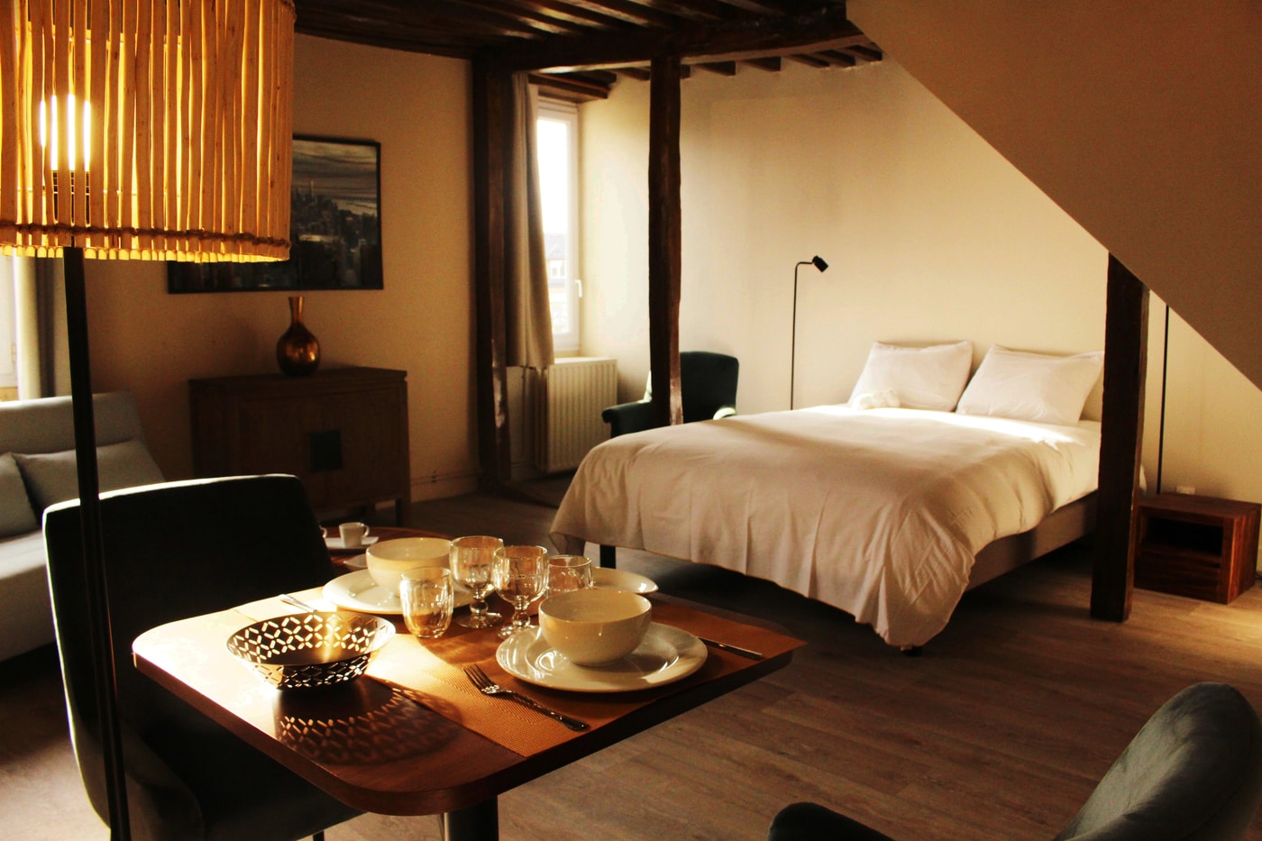 Studio · 45 m²Le Fulbert est un studio cosy de 45 m² ideal pour un couple, situe dans la residence « Cote Chartres ». Lumineux et chaleureux, il dispose d'une vue sur la cathedrale Notre-Dame. Entierement equipe avec une cuisine amenagee, une salle d'eau moderne et une literie de qualite, il offre tout le confort necessaire pour un sejour reposant au coeur de la ville.