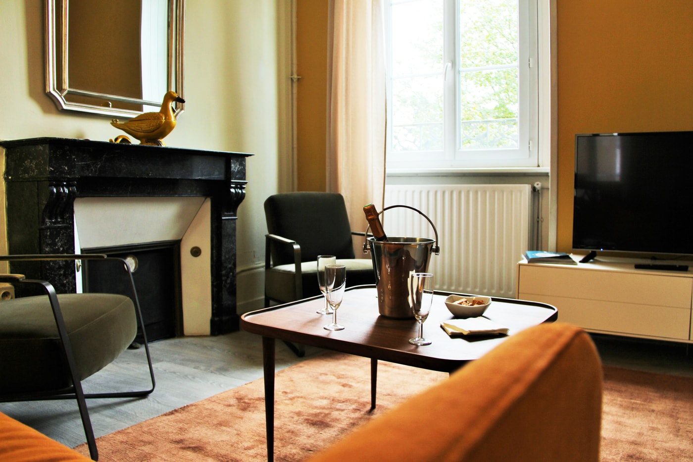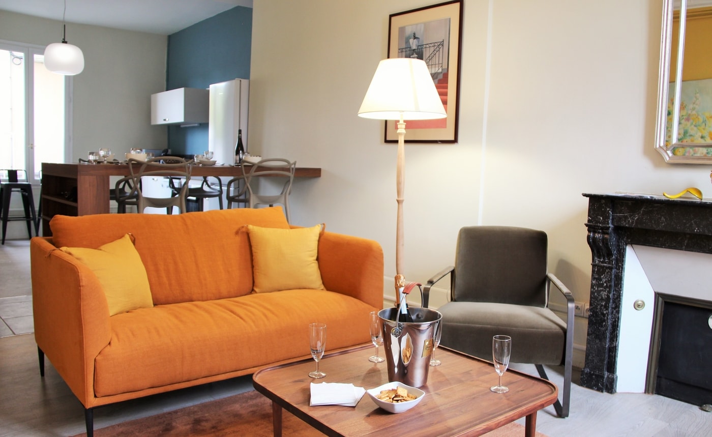 T3 · 90 m²Le Henri IV est un superbe appartement de 90 m² au style chic et art deco. Tres spacieux et lumineux, il possede une vue unique donnant sur la cathedrale et sur la Place des Epars et peut accueillir jusqu'a 4 personnes. Fraichement renove avec des materiaux modernes, il est totalement equipe. L'appartement se compose d'une cuisine tres bien equipee, d'un coin salle a manger et d'un salon spacieux avec un canape et une television. Une salle d'eau avec lavabo, douche et toilettes.